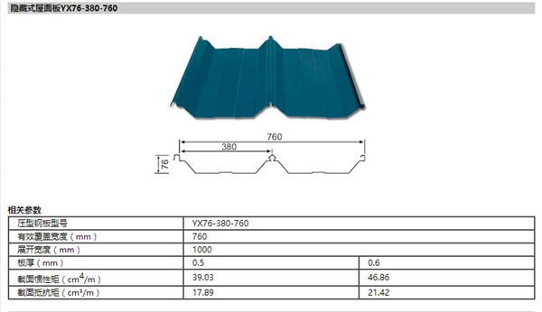 隐藏式屋面板YX76-380-760