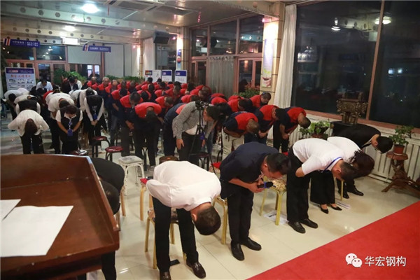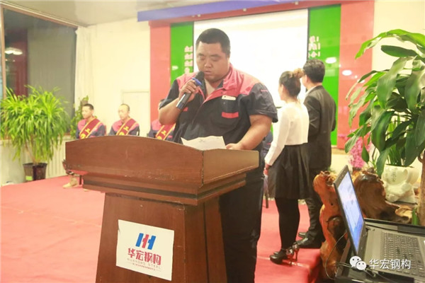 2018年9月3日18时,在公司总部阳光大厅举行了《华宏钢构第三十二届“每月岗位之星”表彰大会》,公司董事长朱宏志、总经理朱宏勇、财务总监刘肖及华宏钢构全体员工参加了大会。