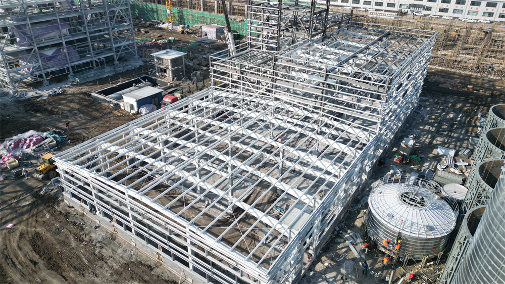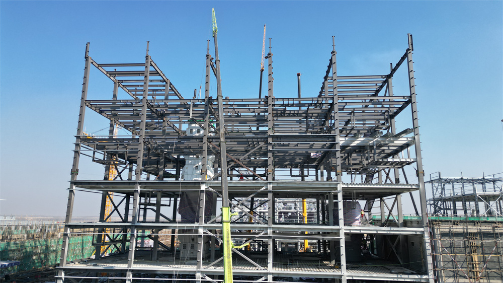 单体建筑面积:7624.37m,建筑高度31.72米,主体为7层结构,含钢量近700吨,采用钢框架,栓接结构,柱为箱型钢柱,梁为H型钢梁,每层平台上设有多个设备洞口,里面设备多,加工工艺复杂,施工多专业交叉作业,工期紧,需各专业高度配合,施工难度大,需打造成高难度、高精度、高标准工程。