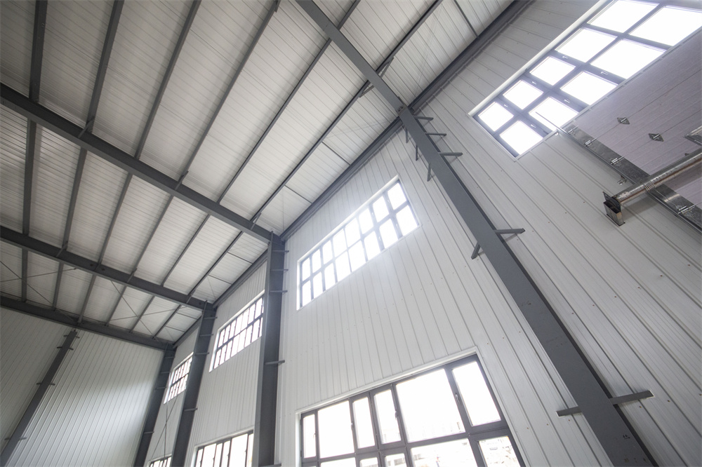 单个工程总建筑面积为:10077㎡,室外设计地面*其口与屋脊的平均高度为13.3米,墙面采用砌体结构,屋面采用轻钢屋架结构,结构为高低跨,不规则形状,加工构件种类多,对安装精度要求高,屋面维护为150厚岩棉复合压型钢板坡屋面,设有多个采光带,屋面单玻长,板重施工难度大,防水要求高。